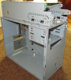 La tour, totalement propre et brillante, est fin prête à recevoir l’installation de tous les périphériques internes à savoir les différents lecteurs, les cartes puis l'alimentation. |